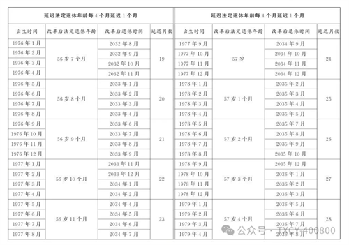 3.原法定退休年齡五十周歲的女職工延遲法定退休年齡對(duì)照表