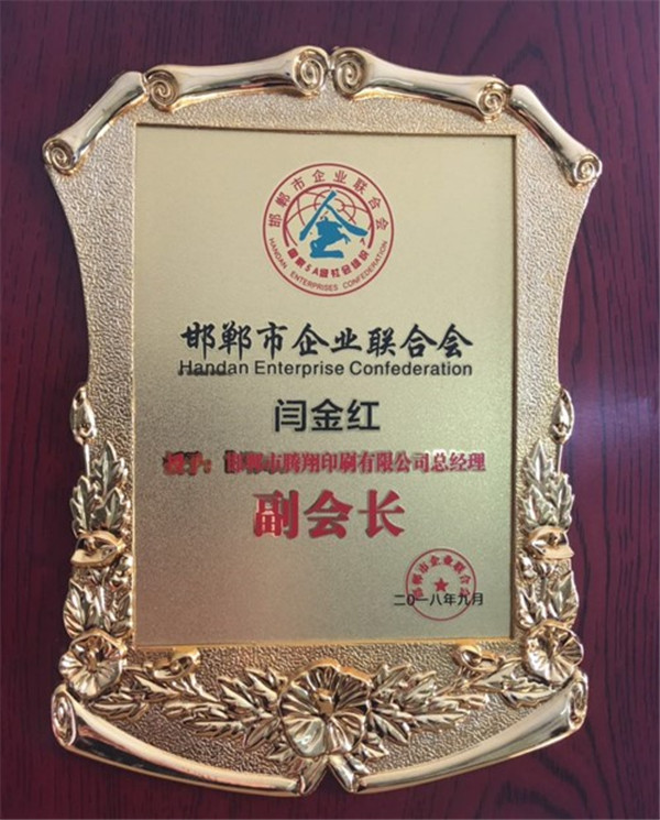 恭賀騰翔印刷聘為邯企聯(lián)副會(huì)長(zhǎng)單位,8年的會(huì)員單位感恩邯企聯(lián)領(lǐng)導(dǎo)們的信任和支持!